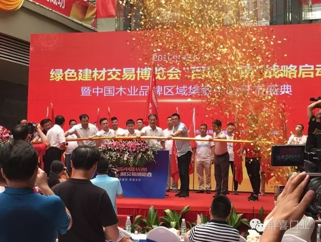 8月5日,2016中国(长沙)绿色建材交易博览会“百城千镇”战略活动启动暨中国木业品牌区域集散中心开市盛典隆重举行!群喜门业盛装参展!