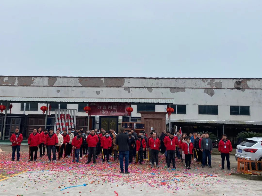 礼炮一响,黄金万两!鲜红的鞭炮纸绽放满地,一片红火,也寓意着群喜门业在新的一年红红红火火!虎力全开!生意兴隆!大吉大利!
